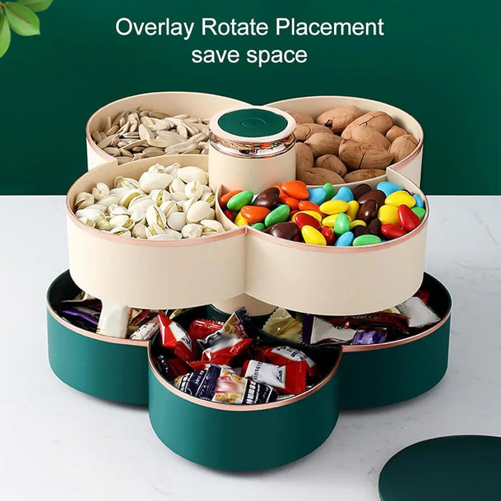 This rotating tray has multiple compartments to easily store and access your favorite dried fruits. Its design allows for easy rotation, making it convenient and efficient to use. Keep your snacks organized and fresh with this practical dry fruit tray.