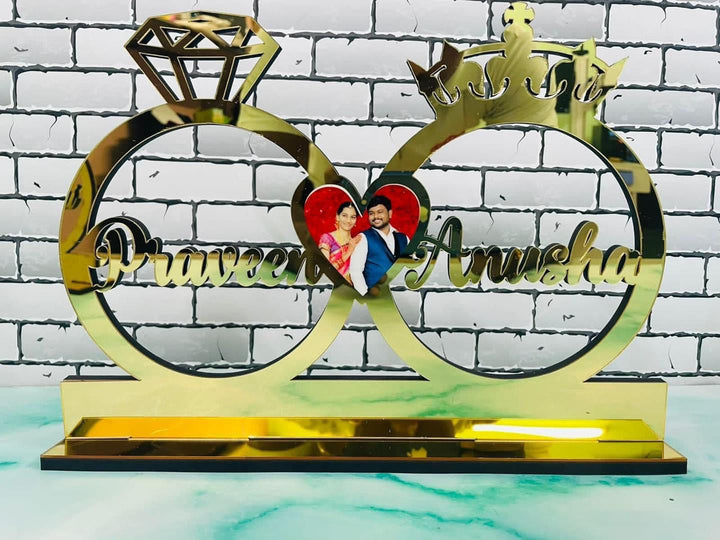 Customize Golden Mirror Frame For Any Couple Name & Picture