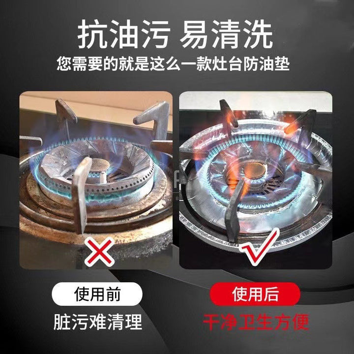 Reduce oil usage and keep your gas stove clean with these Aluminum Foil Stove Oil-Proof Cleaning Pad Covers. Made from high-end, non-toxic material, these pads are not only environmentally friendly but also cut costs by being reusable. Simply wipe with a damp cloth or replace when needed. Suitable for most gas stoves.