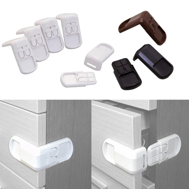 Secure your home and keep your child safe with this pair of child safety locks. The easy-to-install locks are designed to prevent curious little ones from opening cabinets and drawers, giving you peace of mind and ensuring their safety. Made with durable materials, these locks are a must-have for any parent.