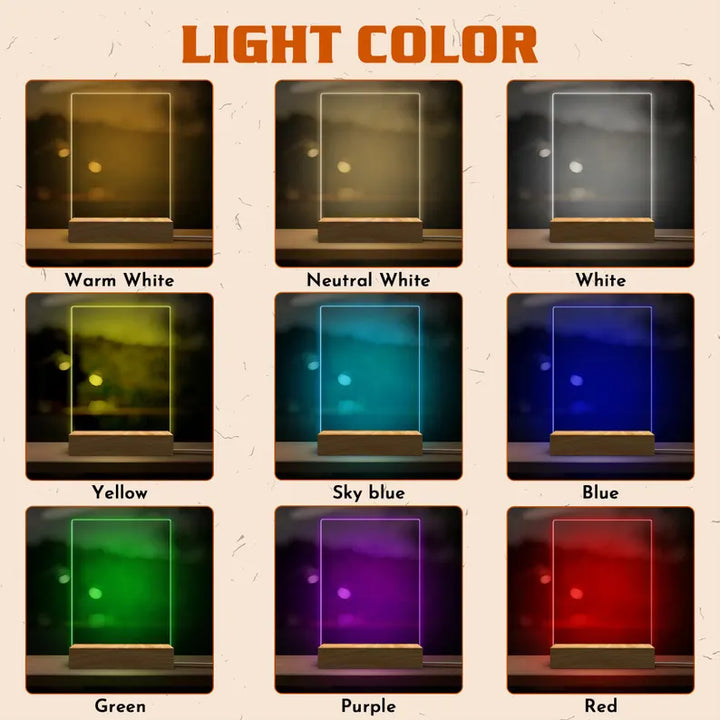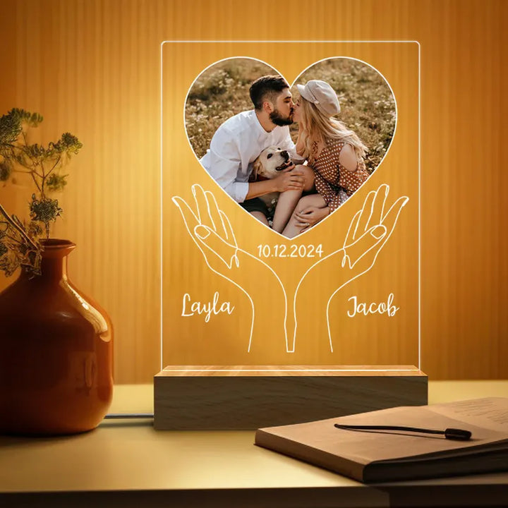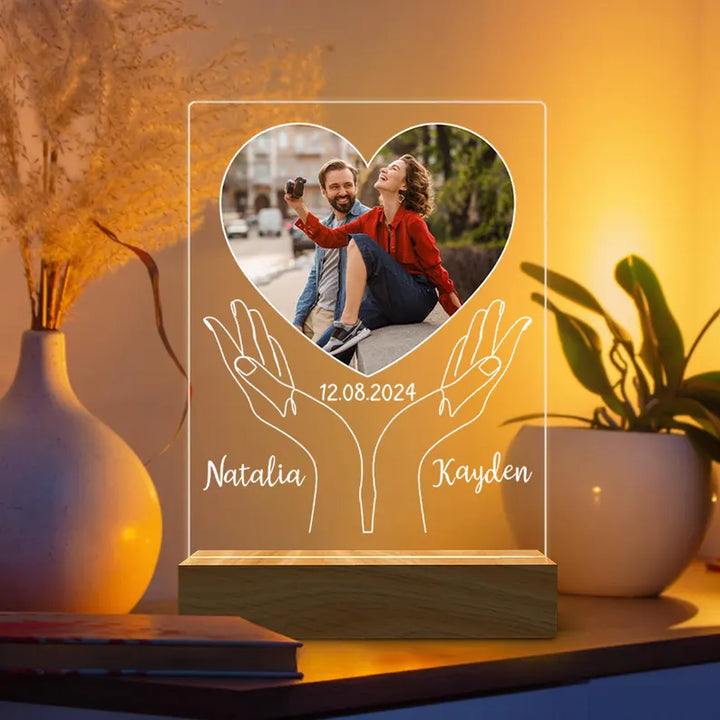 Custom photos plaque- Design a custom night lights using the information you provide about the names and date. That way, this night light can beautifully capture another memory for the cherished ones along with the final touch of an image showing you and the people you love.