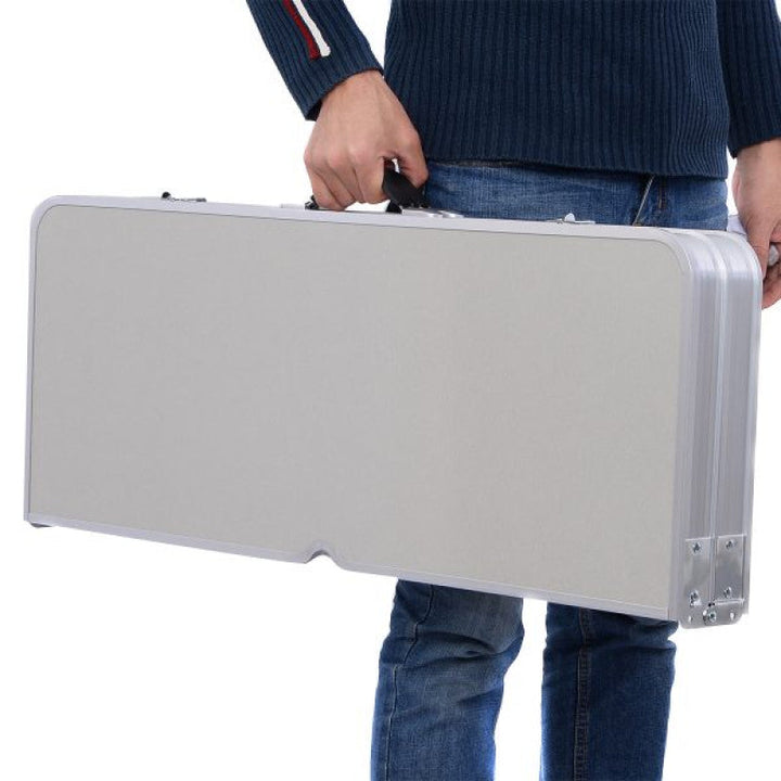 This portable aluminum picnic table with 4 seats is the perfect addition to any outdoor activity. Made with durable aluminum, it is both lightweight and sturdy, making it easy to transport and set up. Enjoy a comfortable and convenient dining experience on-the-go with this versatile picnic table.