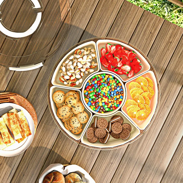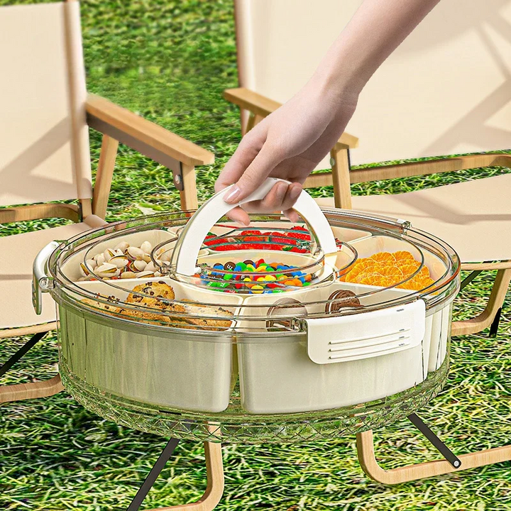 PORTABLE FOOD CONTAINER 6 GRIDS ROTATABLE BEACH PICNIC CASE