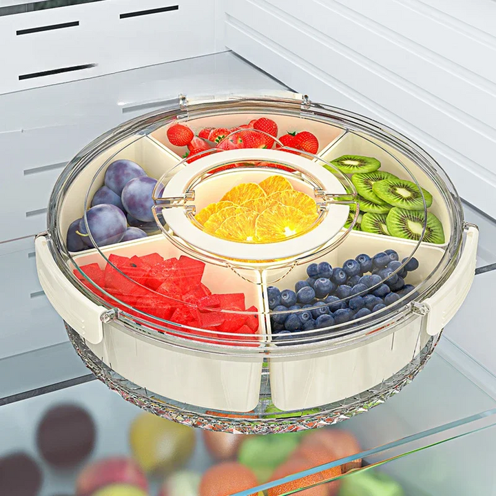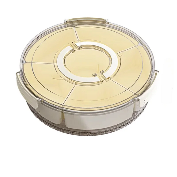 This portable food container features 6 grids for easy organization and a rotatable design, making it perfect for beach picnics. Keep your food fresh and organized while on the go with this versatile and convenient container.
