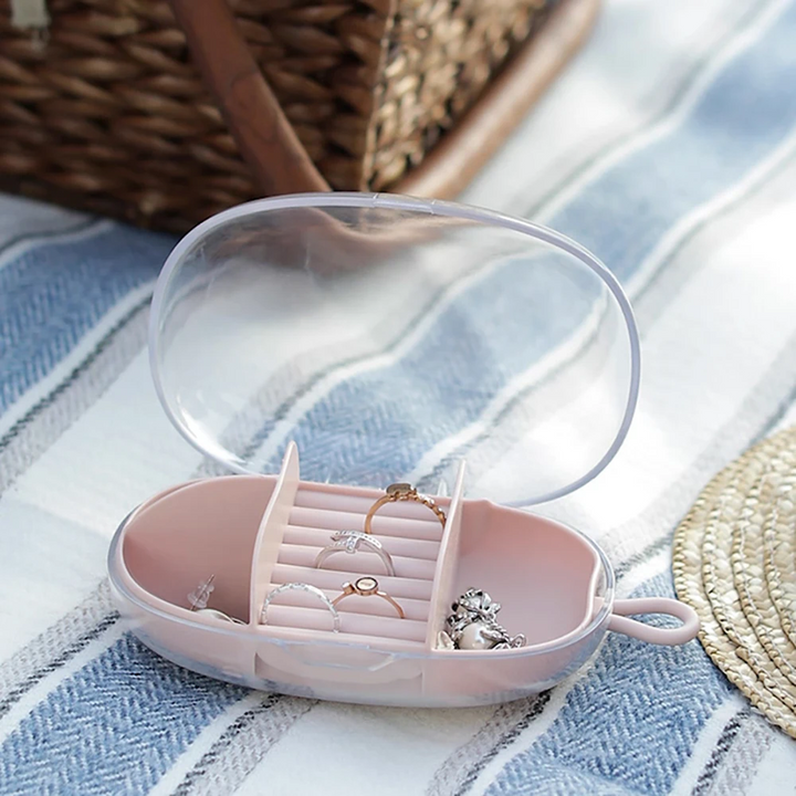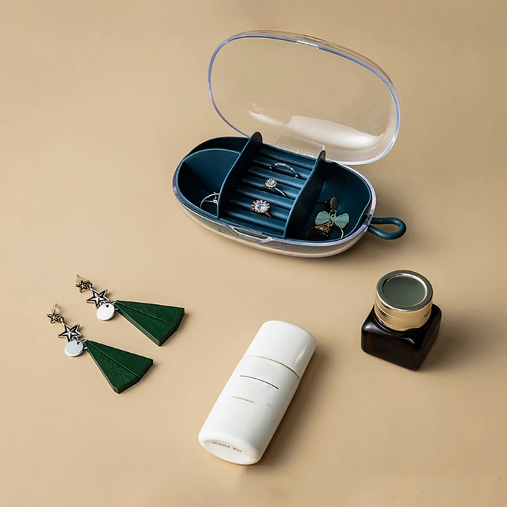 The PORTABLE TRAVEL MINI JEWELRY BOX STORAGE CASE is specifically designed for women and girls on the go. Compact and lightweight, it safely stores and protects your jewelry while traveling. Keep your accessories organized and easily accessible with this must-have for any fashion-conscious traveler.
