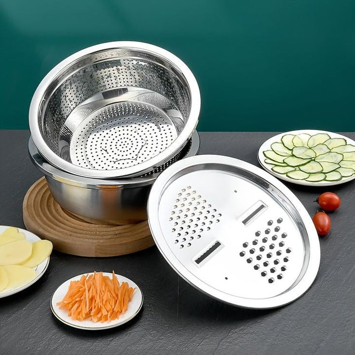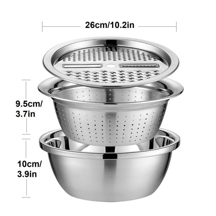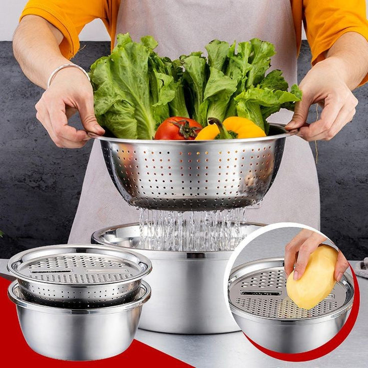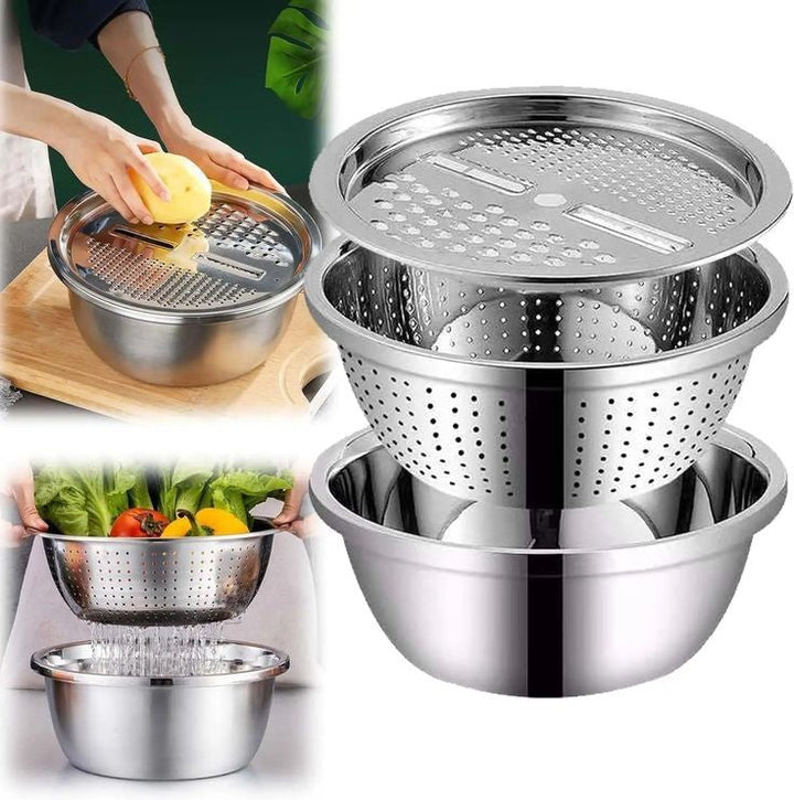 PREMIUM 3 PIECES STEEL COLANDER KITCHEN SLICER GRATER SET