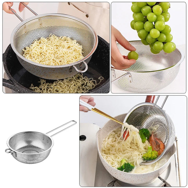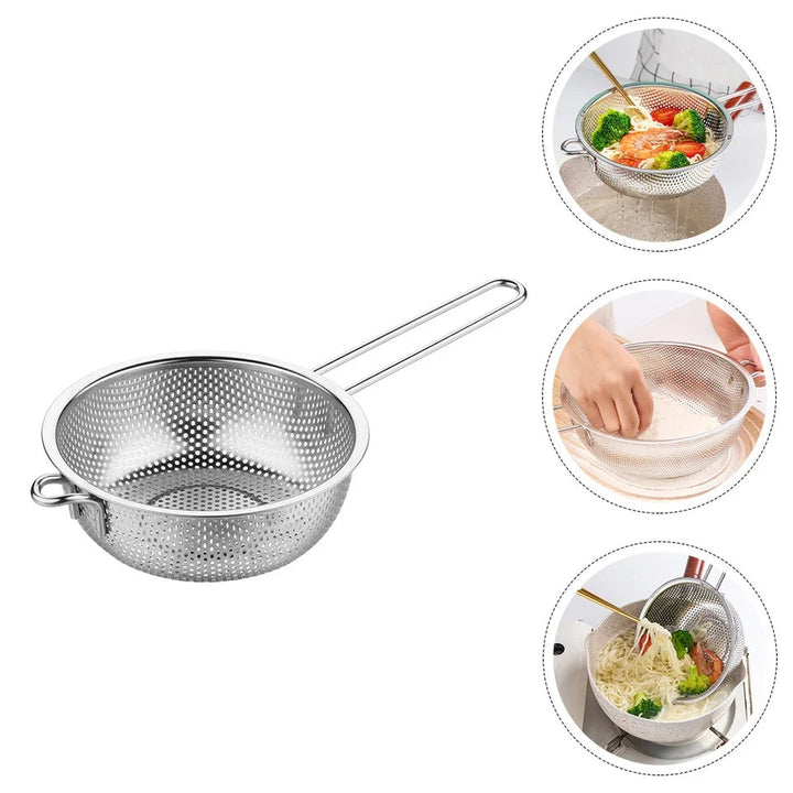 Efficiently strain rice with ease using our Stainless Steel Rice Strainer with Handle. Made from durable stainless steel, this strainer is designed for long-lasting use. The ergonomic handle provides a comfortable grip and makes straining a breeze. Upgrade your cooking experience with this essential kitchen tool.