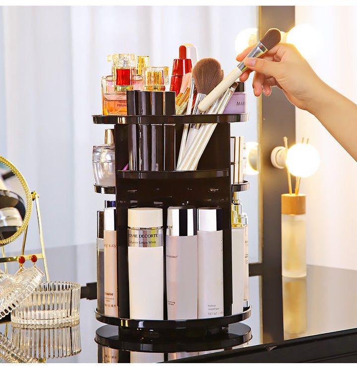 This rotating cosmetic organizer provides efficient storage for your beauty essentials. With its rotating feature, you can easily access your products and save space. Made with high-quality materials, it offers durability and convenience. Organize your cosmetics and elevate your routine with this sleek and practical organizer.