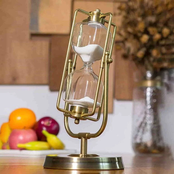 ROTATING HOURGLASS WITH BRASS TONE FRAME 30-MINUTE METAL SAND TIMER
