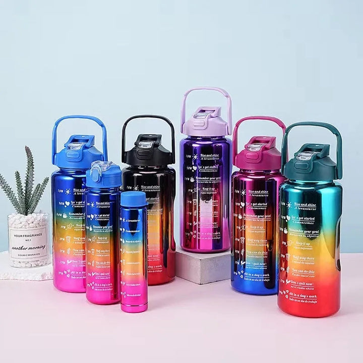 Introducing the SET OF 3 METALLIC COLOR WATER BOTTLE, the perfect set for all your hydration needs. With three vibrant colors to choose from and a metallic sheen, this set is both stylish and functional. Made with durable materials and a leak-proof design, you can stay hydrated on-the-go with ease.