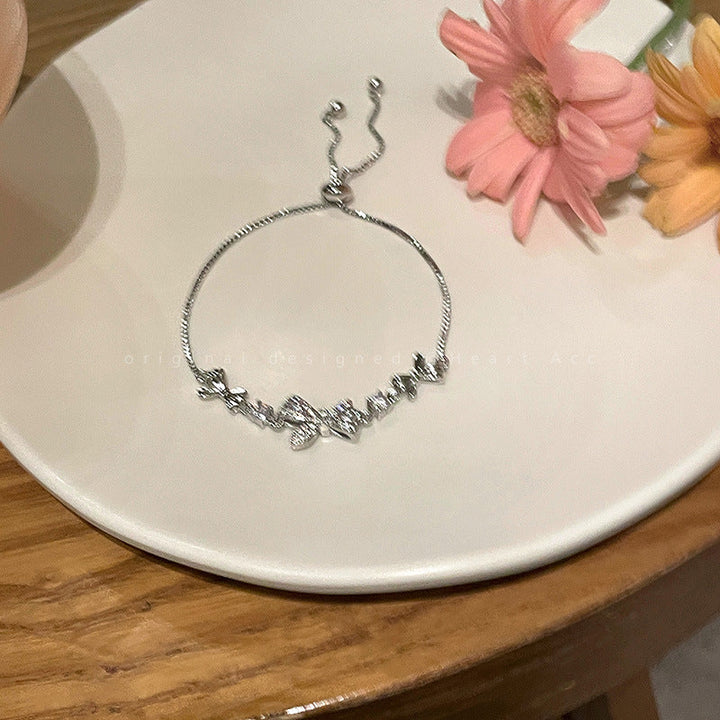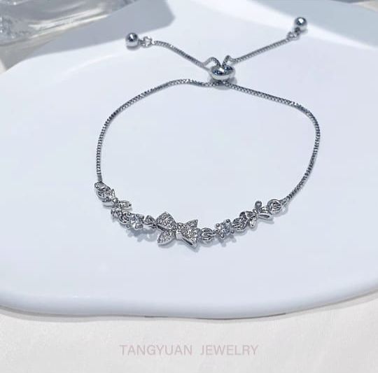 SHINY PINK CRYSTAL CHERRY BLOSSOM BRACELET MOON BOW FLOWERS ZIRCON GIRL JEWELRY