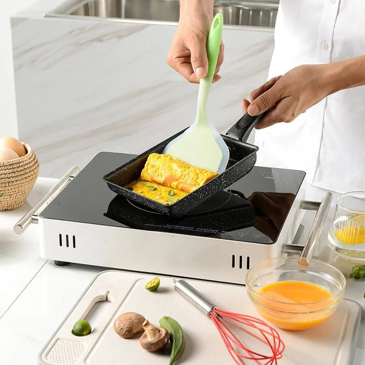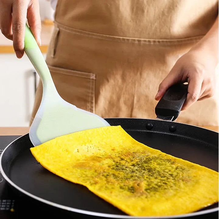 Crafted from durable silicone, this spatula turner is the perfect kitchen tool for flipping and turning food with ease. Its heat-resistant material allows for safe use on hot surfaces, while its flexible design makes scraping and scooping a breeze. Say goodbye to damaged pans and hello to effortless cooking.