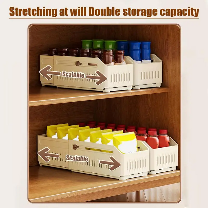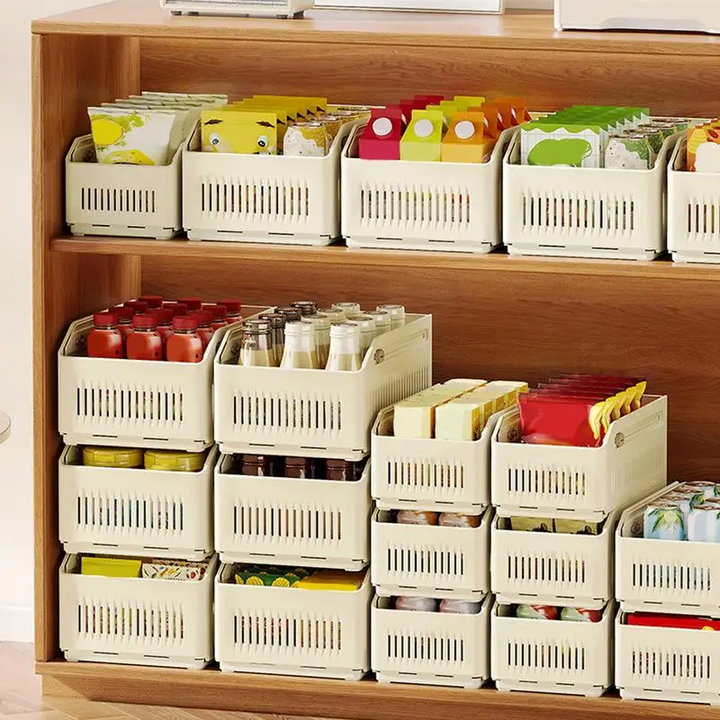 STACKABLE PULL-OUT ORGANIZER SNACK STORAGE FOR PANTRY KITCHEN BEDROOM