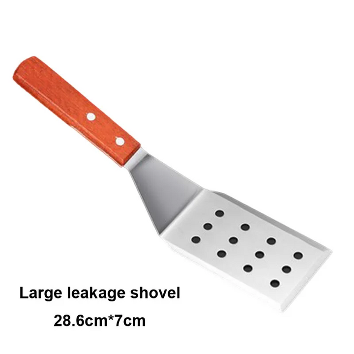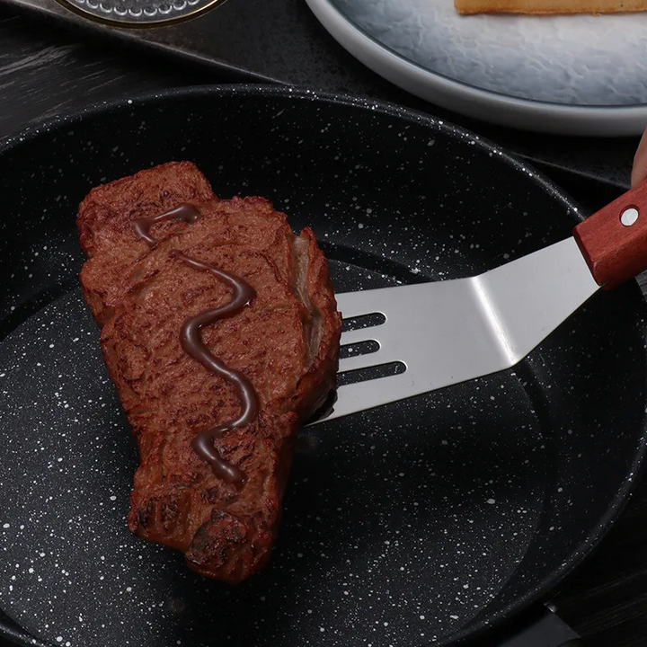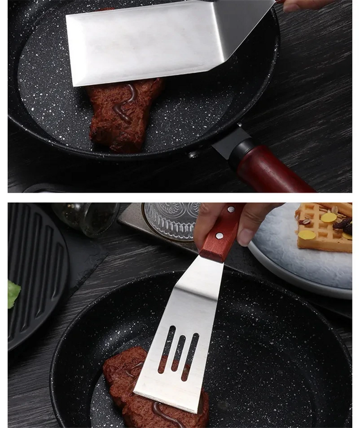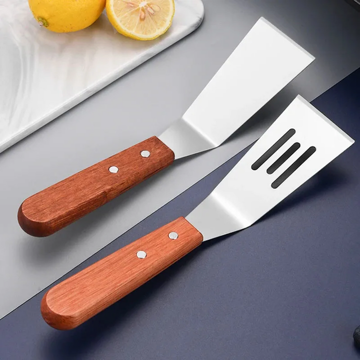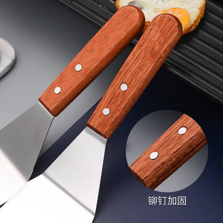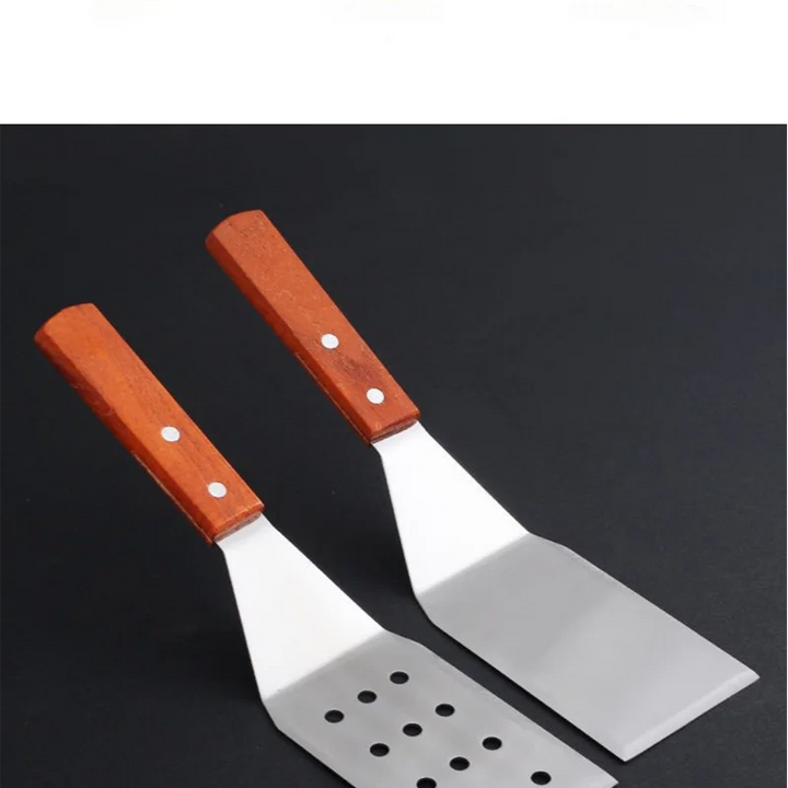 STAINLESS STEEL STEAK SPATULA WITH WOODEN HANDLE BBQ TURNER