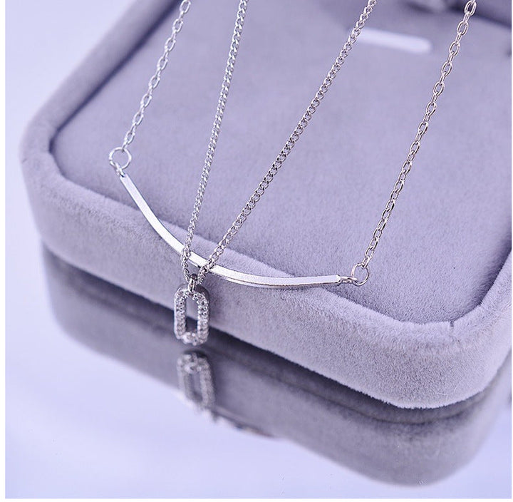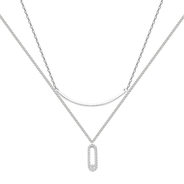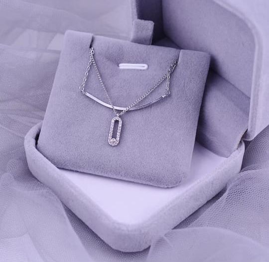 STERLING SILVER DOUBLE CUBAN LINK CHAIN, SMILE ZIRCON PENDANT NECKLACE FOR WOMEN