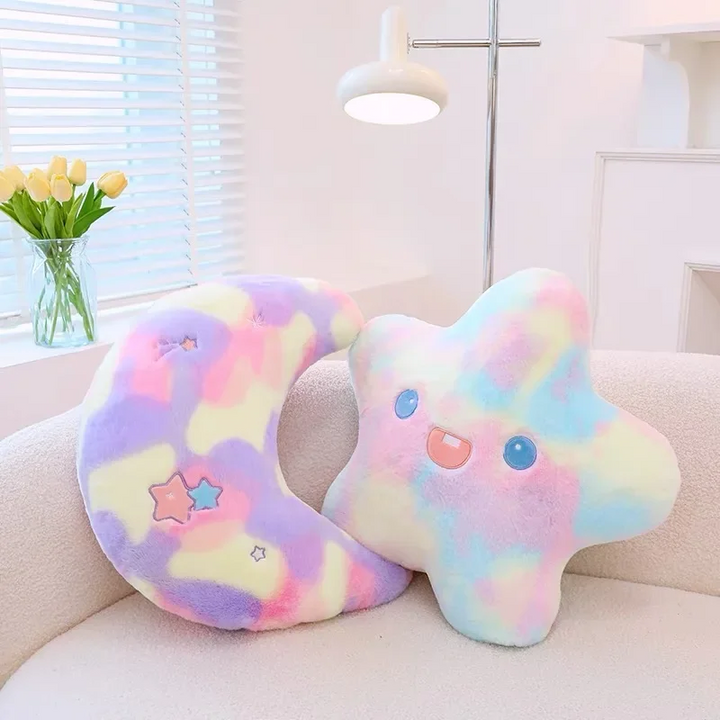 TIE-DYE STAR & MOON PLUSH CUSHION PAIR