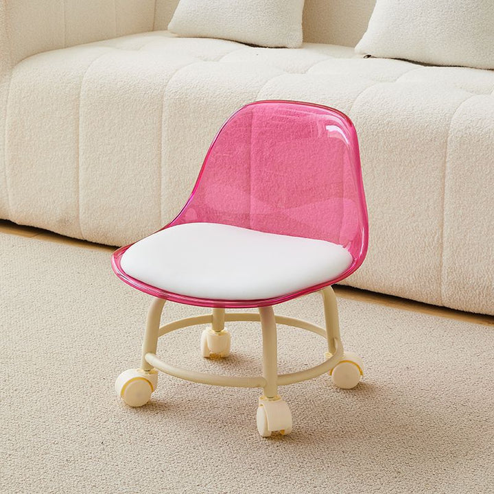 This transparent heavy duty movable chair with wheels is a professional and modern seating option for any space. With its sturdy construction and smooth wheels, it offers both durability and easy transportability. The transparent design adds a sleek and contemporary touch to any environment.