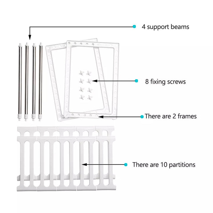 This clever UNDER SINK SHELF maximizes the space under your sink, keeping your cleaning supplies organized and easily accessible. With its sturdy design and adjustable height, it's perfect for any home. Save up to 50% more space and make your daily cleaning routine a breeze.