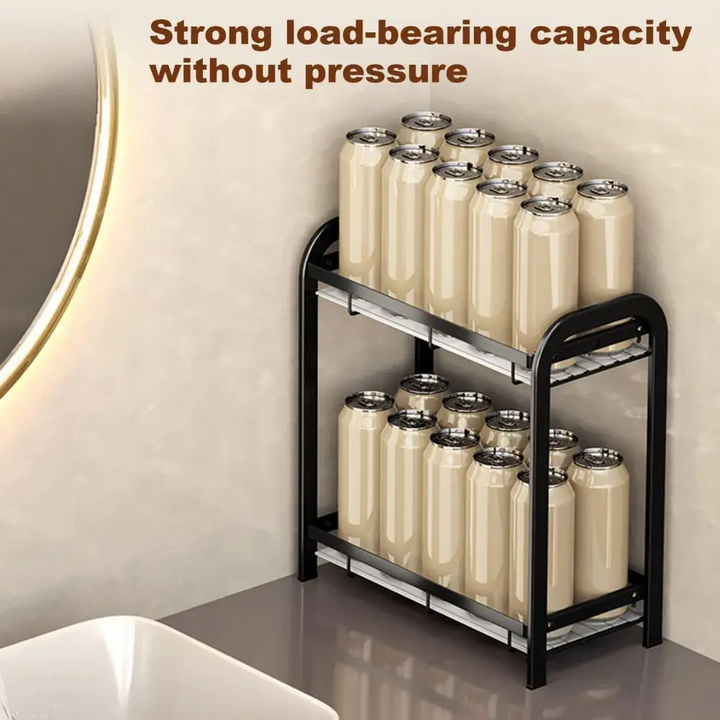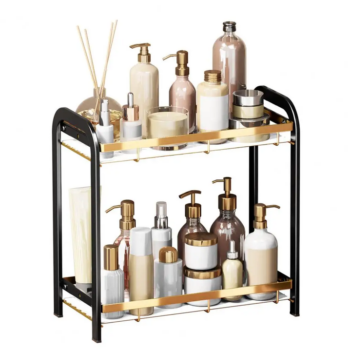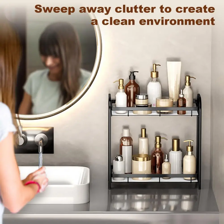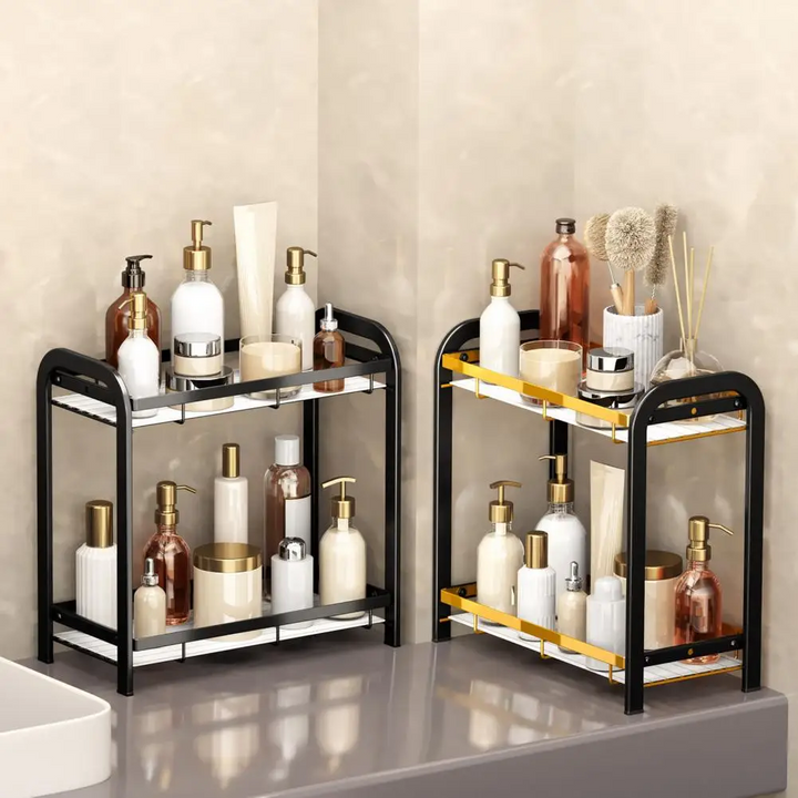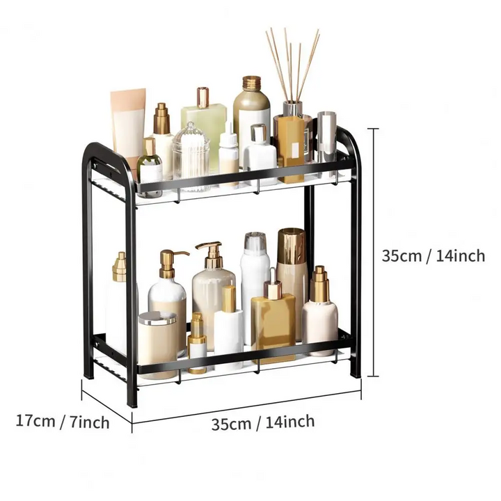 Enhance your bathroom storage with our versatile and sturdy organizer. Easy to install with its unique design, this storage shelf offers convenience and functionality. Say goodbye to cluttered countertops and hello to a neat and organized bathroom.
