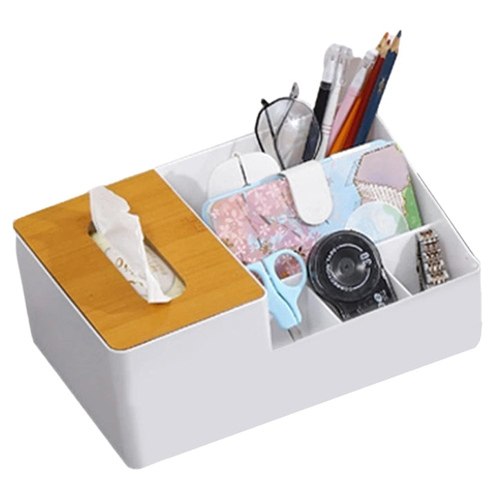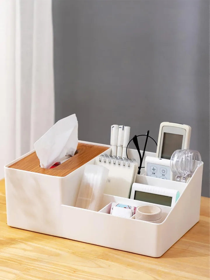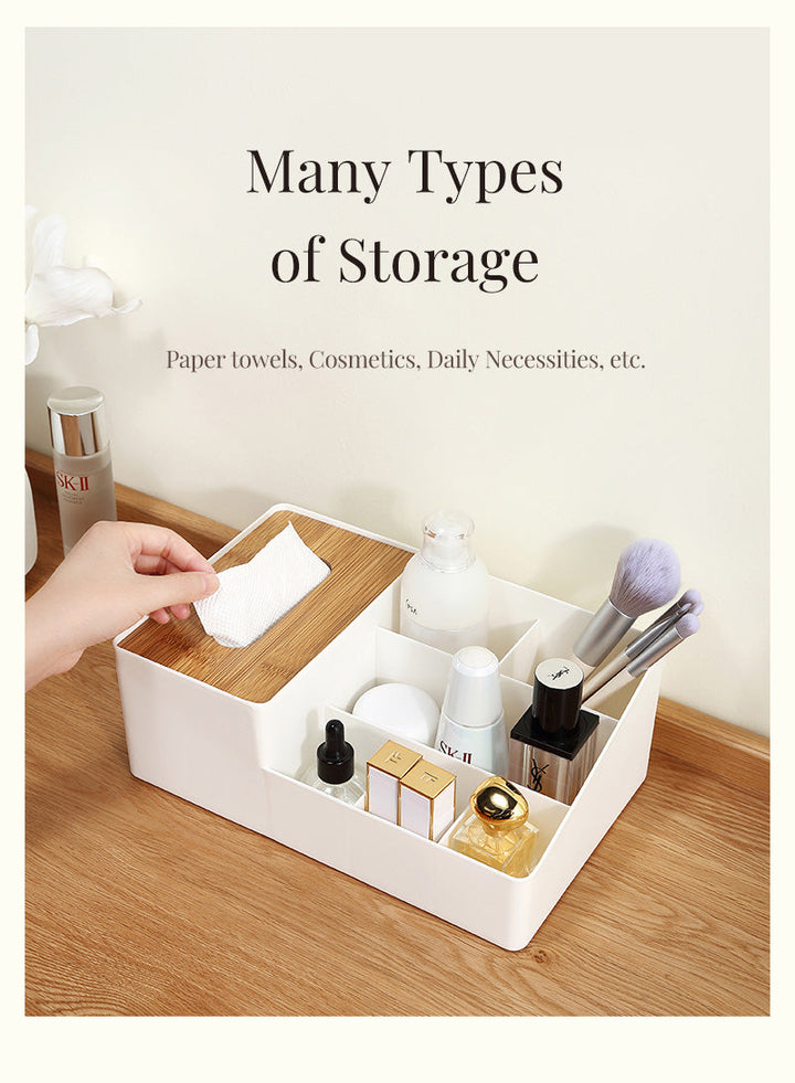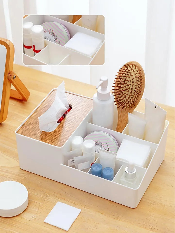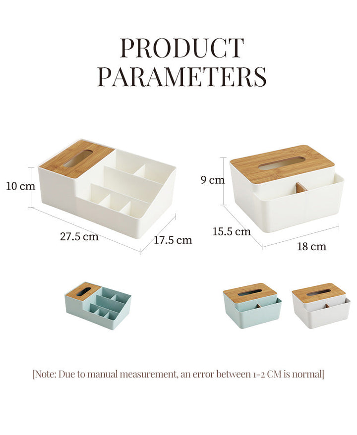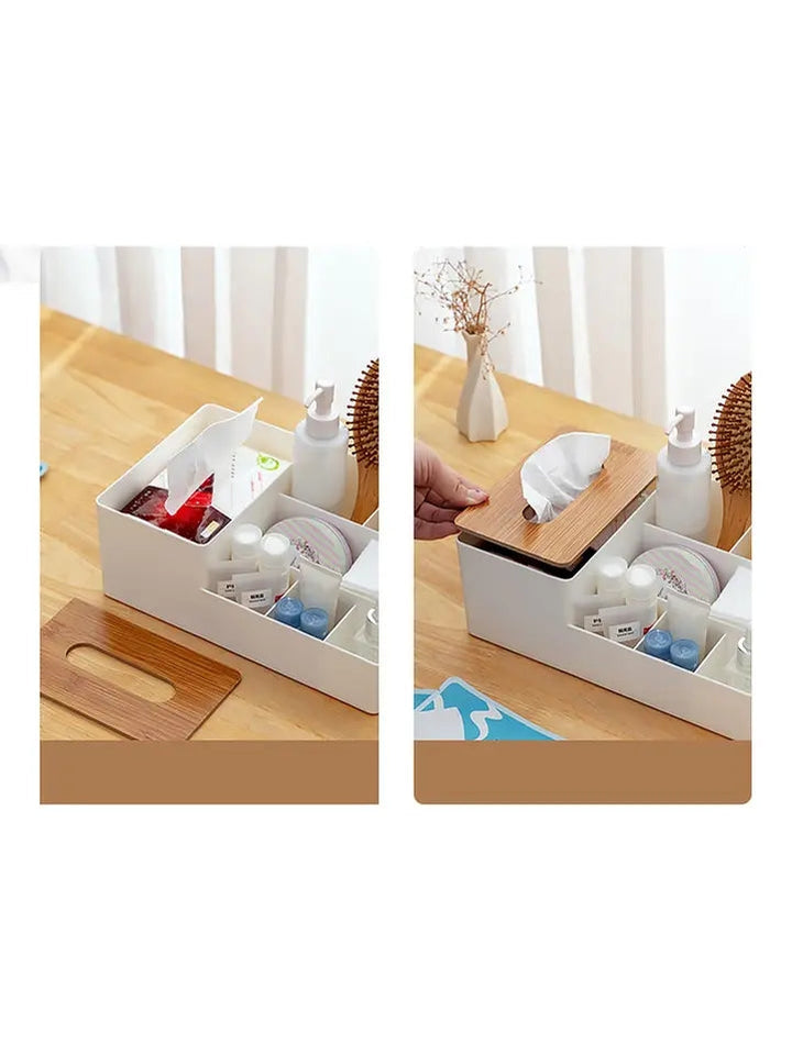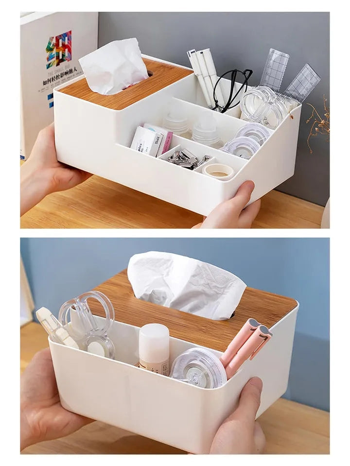WOODEN TISSUE BOX WITH SHELVES